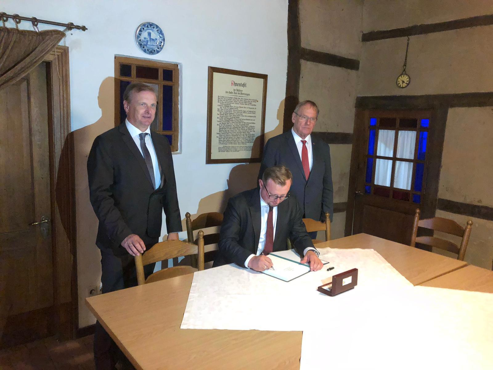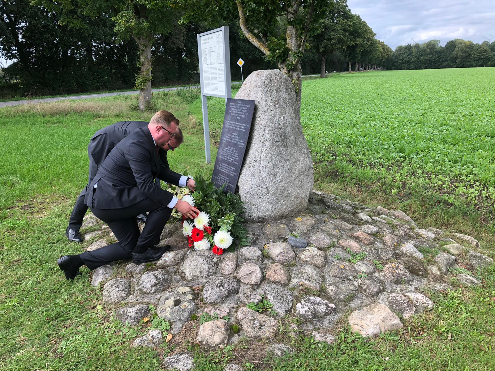 Der Generalkonsul der Republik Polen in Hamburg, Herr Pawel Jaworski, hat heute das ehemalige Lager VI in der Gemeinde Oberlangen besucht, um dort in Gedenken an den Ausbruch des 2. Weltkrieges am 01. September 1939 einen Blumenstrauß niederzulegen.