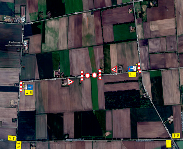 In der Zeit vom 21.08.2025, 15 Uhr, bis zum 03.10.2025 wird ein Teilstück der Straße Vossebergweg in der Gemeinde Oberlangen gesperrt. Eine entsprechende Umleitung ist ausgeschildert.