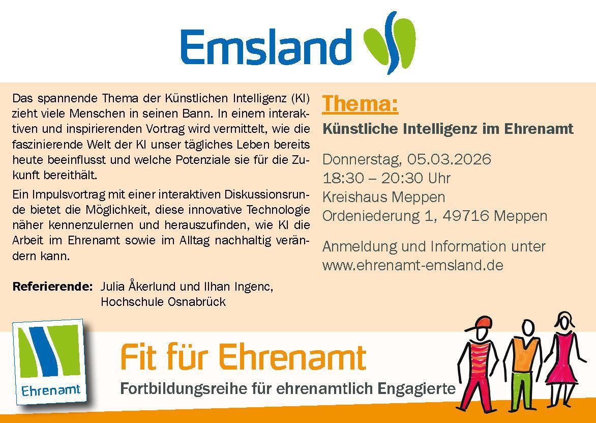 Bis Anfang Mai 2026 bietet der Landkreis Emsland wieder verschiedene kostenlose Fortbildungsreihen für ehrenamtlich Engagierte an.