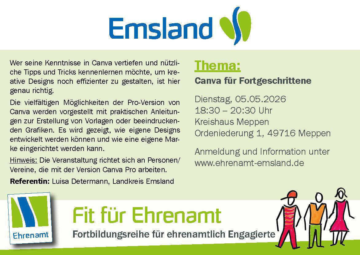 Bis Anfang Mai 2026 bietet der Landkreis Emsland wieder verschiedene kostenlose Fortbildungsreihen für ehrenamtlich Engagierte an.