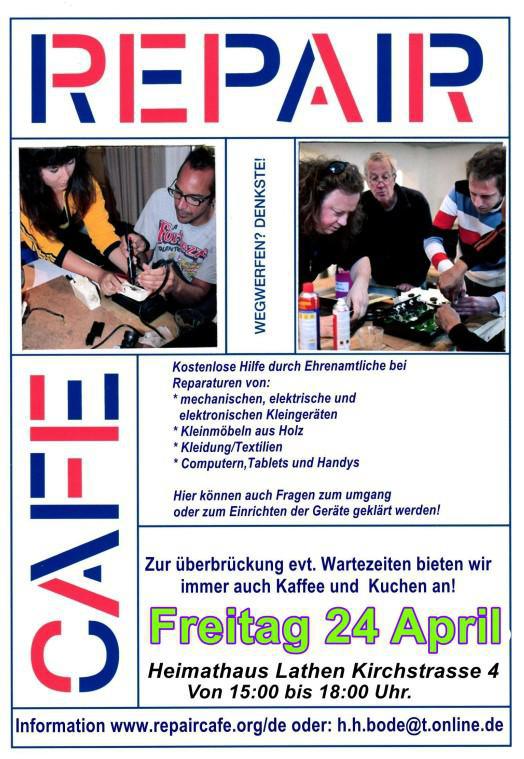 Das Repair Café öffnet am 24.04.2026 wieder seine Türen im Heimathaus (Kirchstraße 4) von 15.00 bis 18.00 Uhr und bietet kostenlose Hilfe durch Ehrenamtliche bei Reparaturen von: