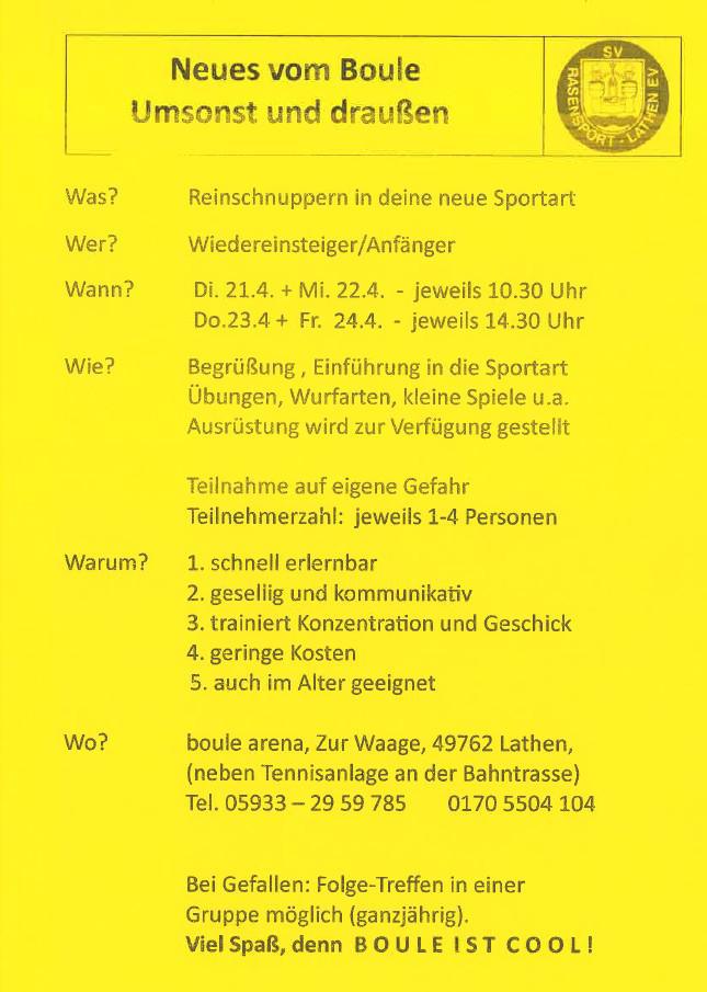 Reinschnuppern in deine neue Sportart! Für Anfänger und Wiedereinsteiger!!! Komm vorbei, denn Boule ist cool!