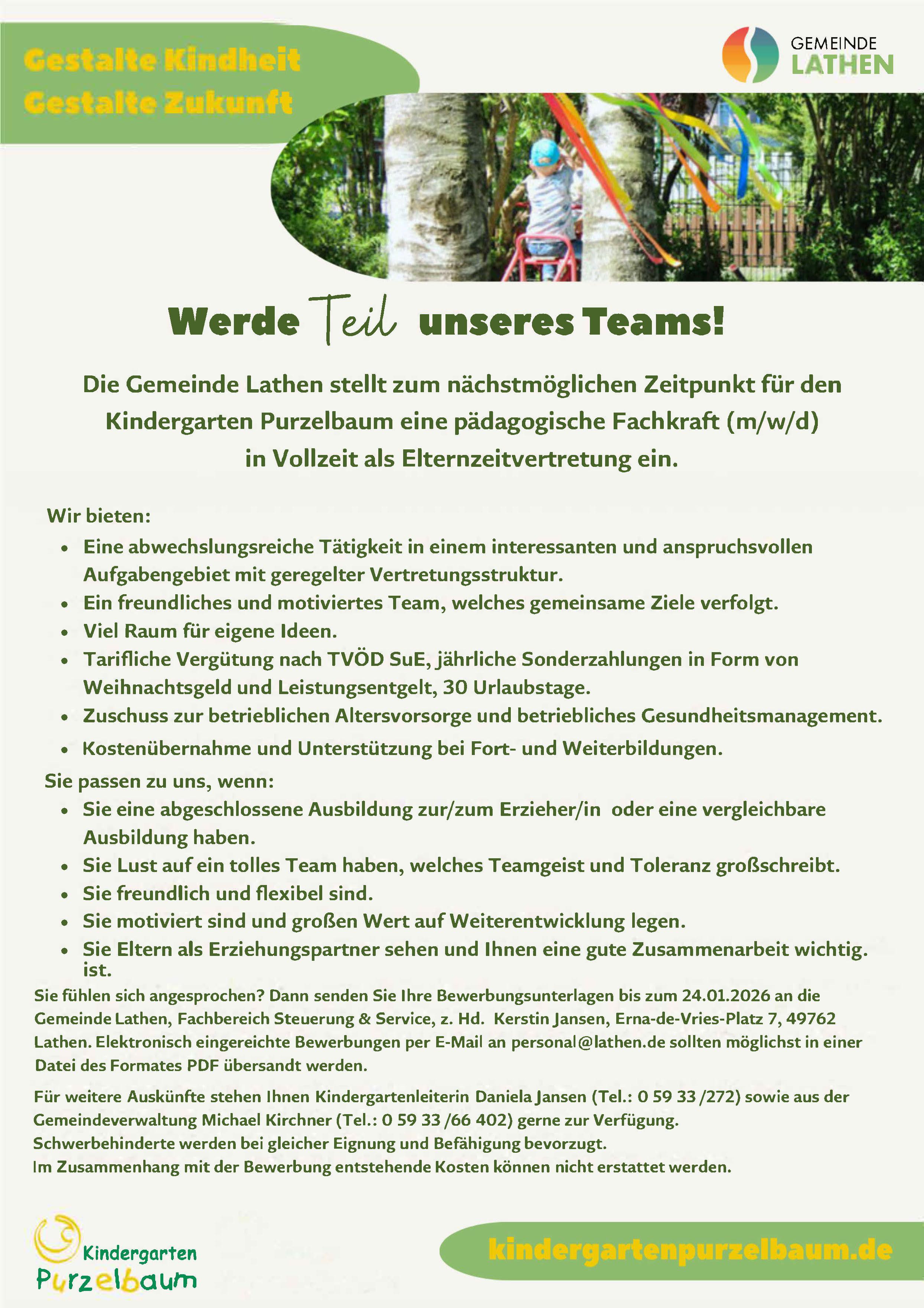 Gestalte Kinderträume mit: Pädagogische Fachkraft (m/w/d) gesucht