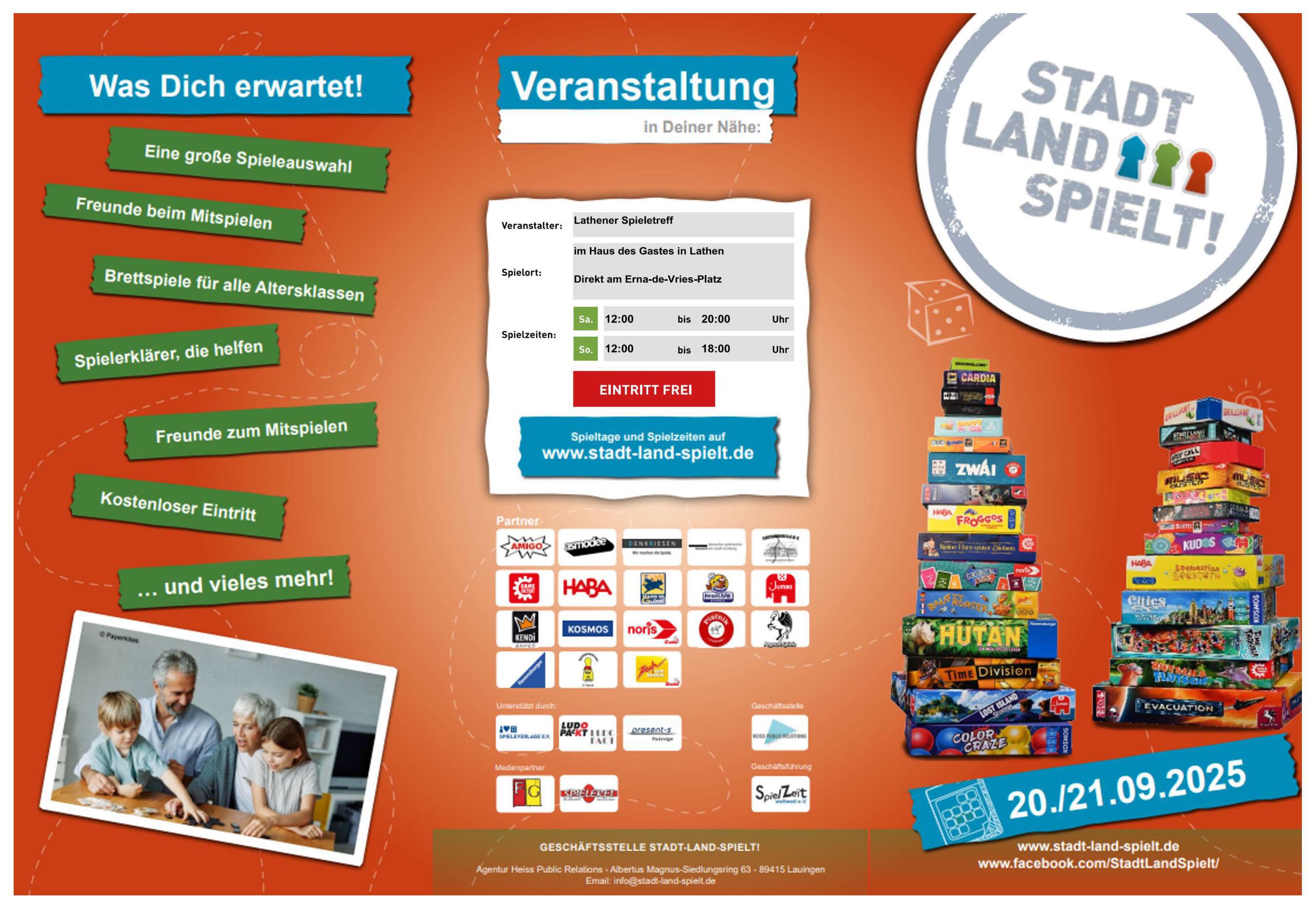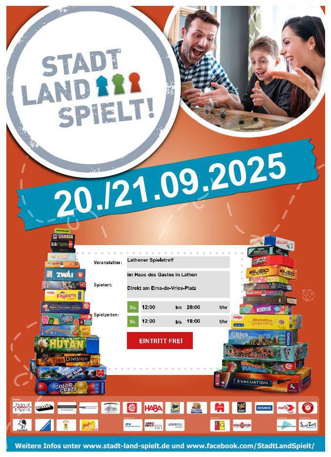 Am 20./21.09.2025 findet im Haus des Gastes, Erna-de-Vries-Platz 5 in Lathen die Veranstaltung "Stadt Land Spielt!" statt.